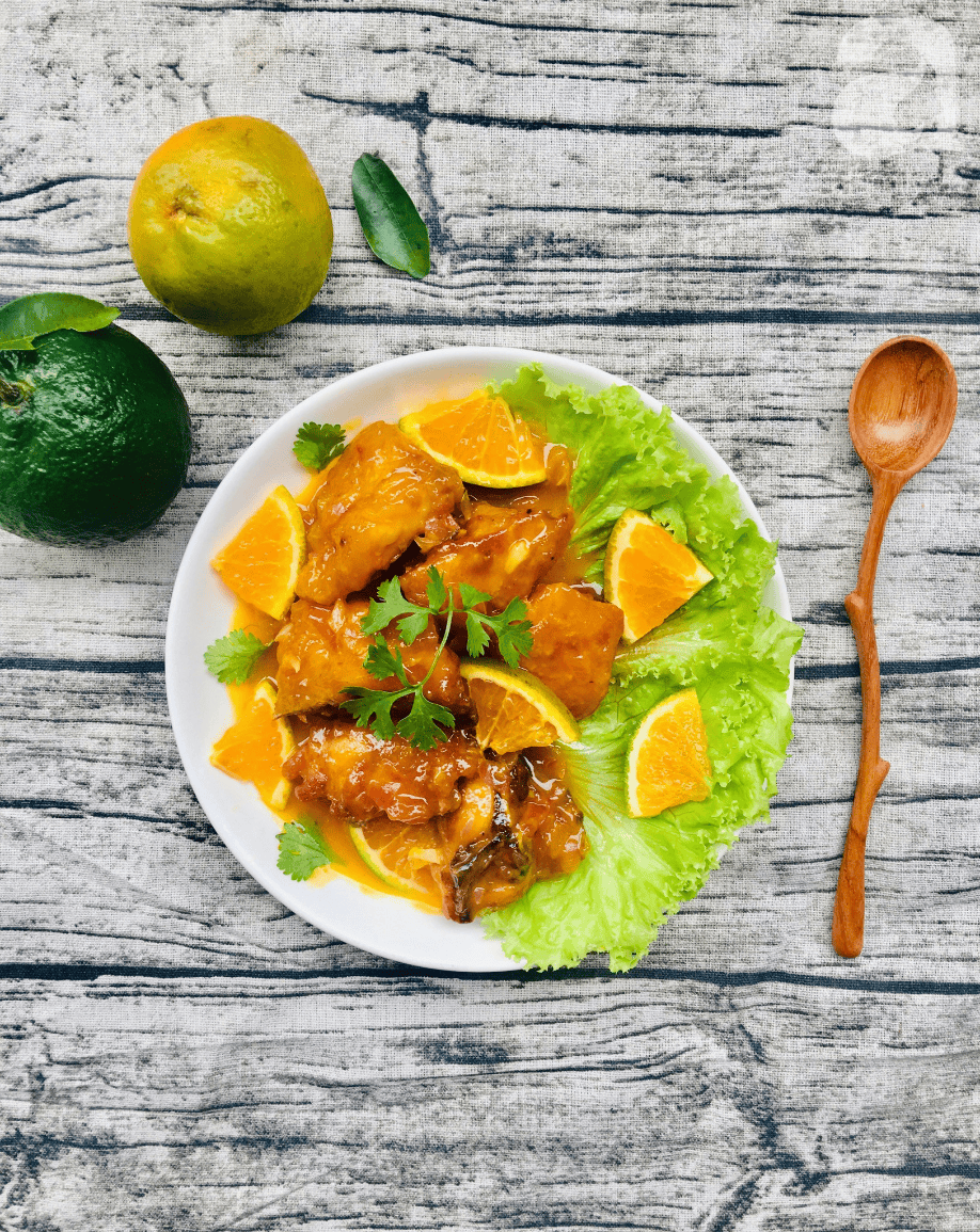 Gà xốt cam giòn thơm, thấm vị chua ngọt đậm đà của xốt cam sẽ là món ăn lạ miệng bắt cơm vô cùng!