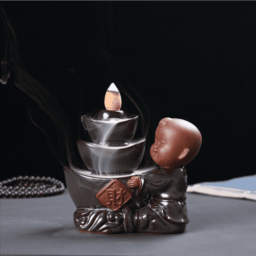 Do đó, mệnh Thủy nên sử dụng sản phẩm thác khói hình tiểu hòa thượng ngồi bên suối hoặc tiểu hòa thượng rót trà sẽ giúp cho tâm trạng luôn vui vẻ, tinh thần sảng khoái từ đó may mắn sẽ tới ầm ầm.
