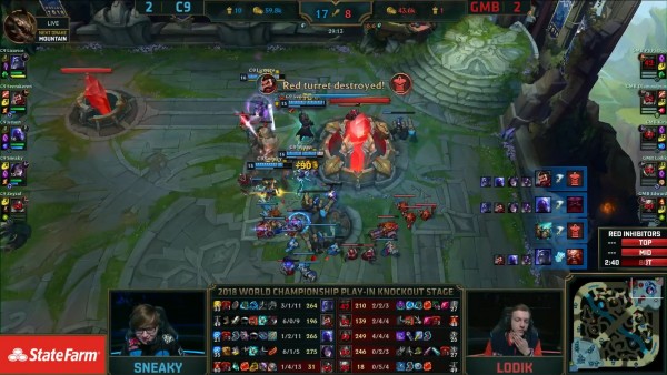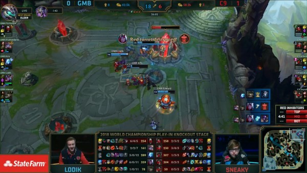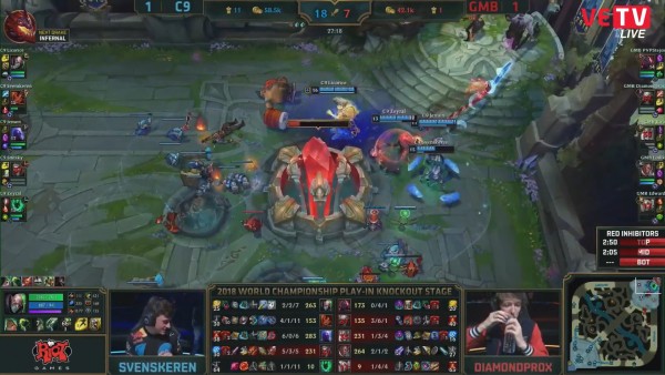 Thế trận giằng co được 2 đội thiết lập xuyên suốt ván đấu với những màn trao đổi liên tục. Bởi khả năng đi đường tốt hơn nên C9 có phần chủ động hơn về mặt kiểm soát. Tuy vậy, GMB lại có khả năng mở giao tranh rất mạnh với bộ chiêu thức bắt chết 1 mục tiêu. Khi trận đấu cứ ngỡ sẽ được kéo dài thì C9 bất ngờ đưa ra pha tấn công ở phút 24 để dứt điểm nhanh chóng 4 thành viên GMB. C9 có Baron, sau đó là cả đường dưới của đối thủ. Trước việc thua tới 12 nghìn tiền, GMB không còn đường lui và họ quyết định mở giao tranh ở đường trên, và ở đó, Licorice đã xuất sắc có Triplekill với Shen, qua đó giúp C9 quét sạch đối thủ, đồng thời dứt điểm ván đấu. Chung cuộc C9 là đội đầu tiên từ vòng khởi động tiến vào vòng bảng CKTG 2018.