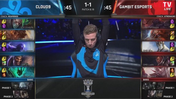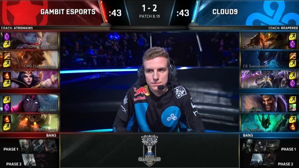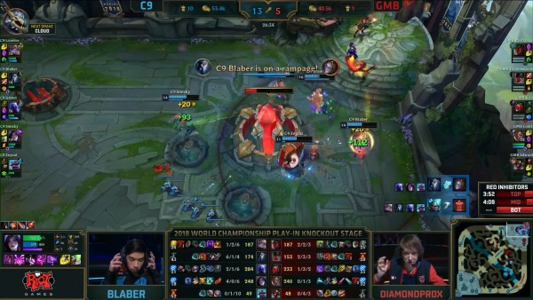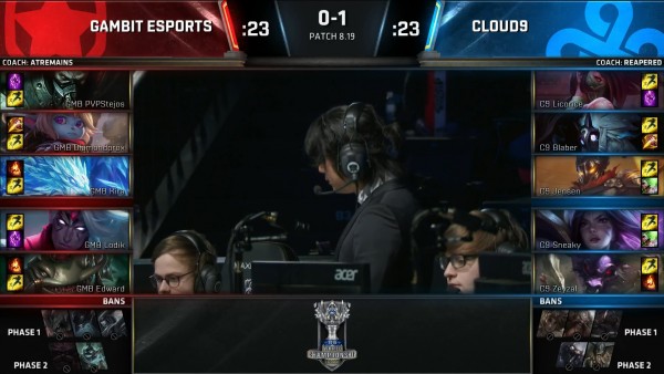C9 đã để đối thủ tận dụng triệt để khả năng bắt chết 1 mục tiêu của mình và liên tục là những lần Draven của Sneaky bị hạ gục. Mọi thứ trở nên ngày càng tệ với C9 khi Diamondprox dứt điểm thành công con Baron ở phút thứ 25. Và giống như cái cách hủy diệt đối thủ, C9 rất nhanh chóng để thua GMB khi đội hình bị quét dơ ở phút 27. Trận đấu sẽ cần 5 ván đấu.